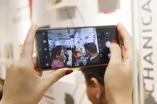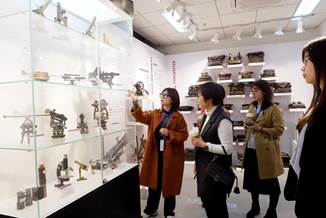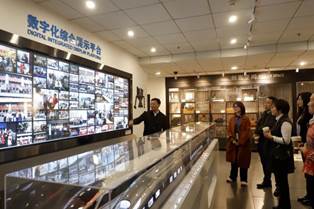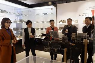 武利亚一行在邱成、潘显钟等陪同下参观了大学生机械博物馆、创客空间和数字化综合展示平台,并体验了由学生研发的虚拟背景成像项目。