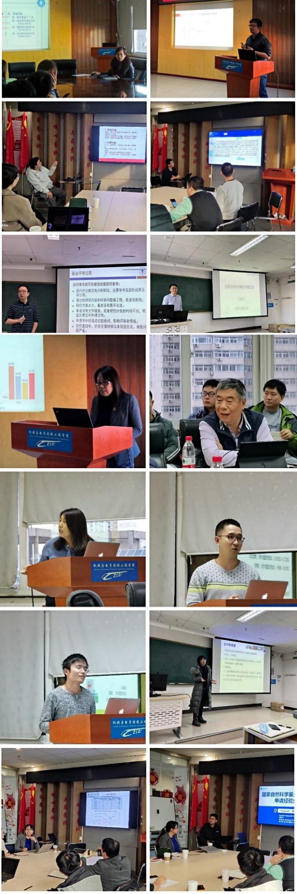 贾力、任尊松、张乐乐等3位教授介绍了多年来申报重点基金、行业联合基金、国际联合基金等重要项目的经验,分享了国家自然科学基金的选题、写作、申报以及评审的要点和注意事项;逐一深入分析了基金申请立项依据、研究内容、技术路线、科学问题和预期成果以及进度安排等具体内容,对如何将科学问题写实写透进行了详细阐述;鼓励青年教师尽早着手准备基金项目的申请,凝练高水平科研成果,不断提升基金层次。