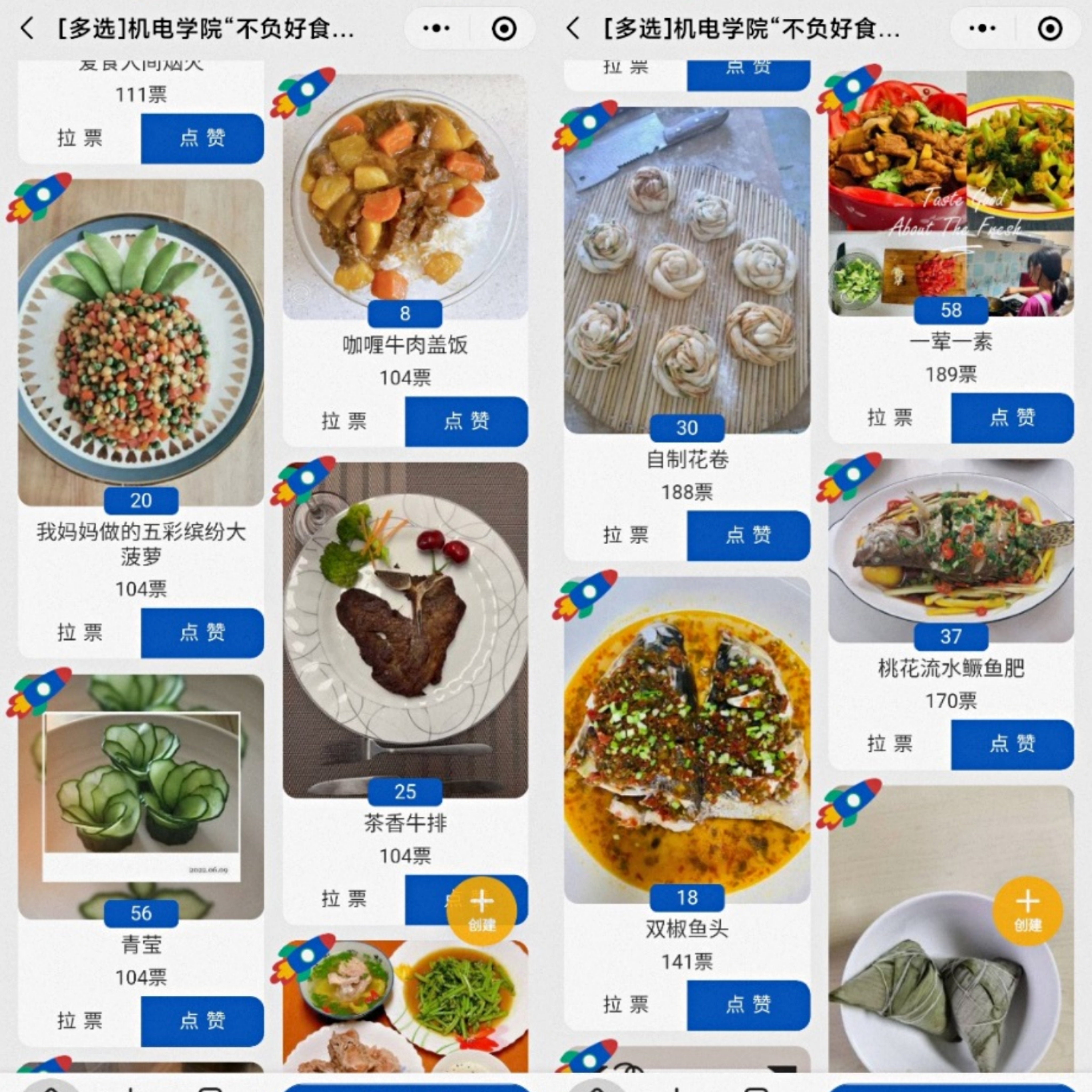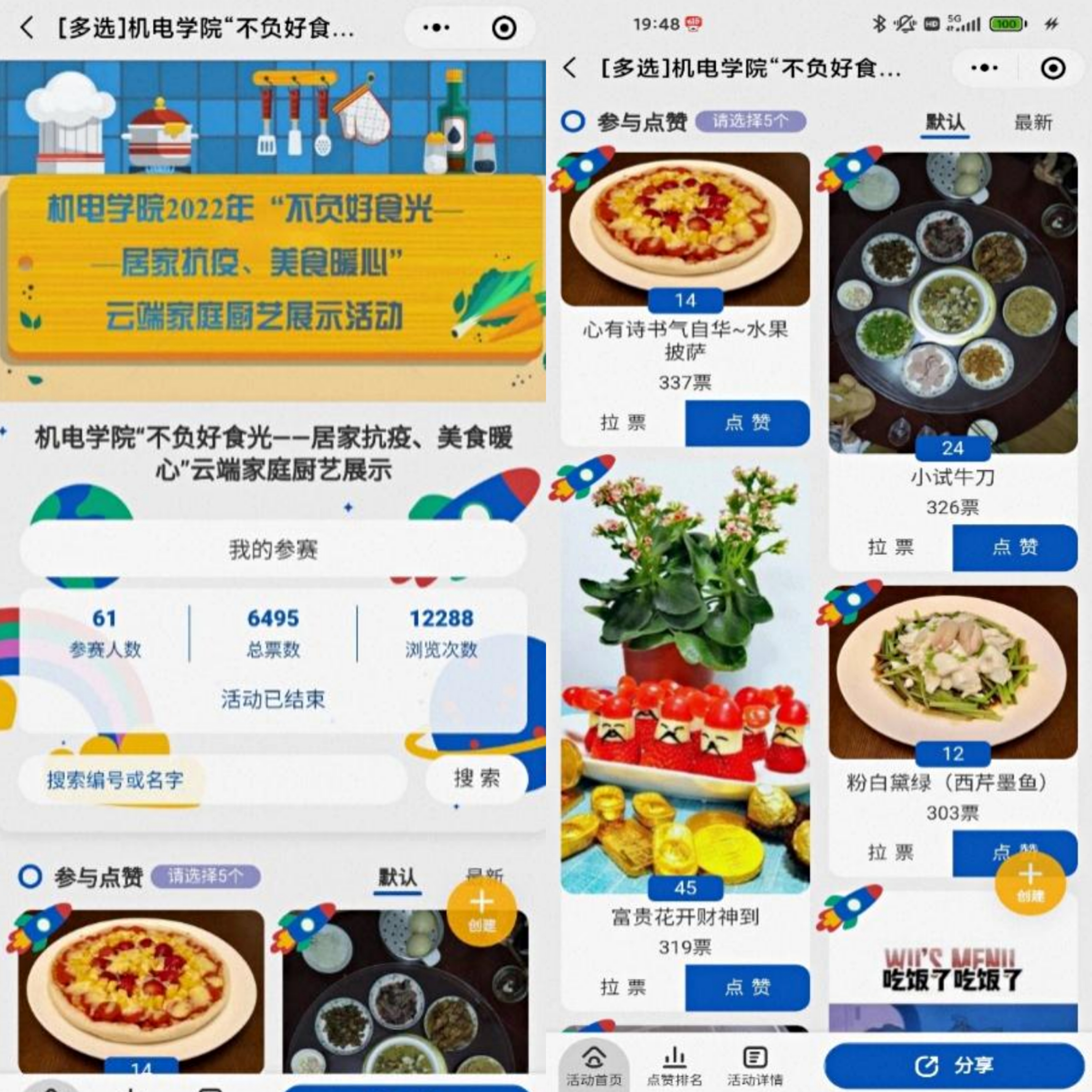 本次活动共有61名教职工报名参加,大家纷纷展示了自己的私厨秘制和拿手绝活,各式各样参赛佳肴琳琅满目,让人垂涎欲滴。活动期间共吸引12288人次浏览,总投票数达6495次。通过全院教职工的热情鉴赏及投票,得票数前5名的厨艺作品被评为“最佳人气奖”。