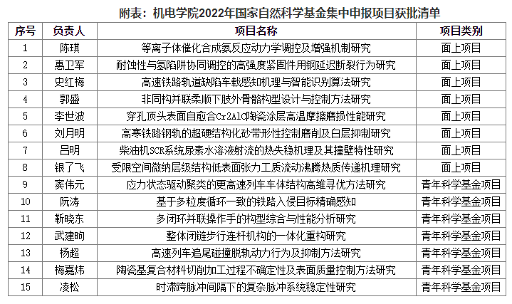 近日,国家自然科学基金委员会公布了2022年度国家自然科学基金集中申报项目评审结果,77779193永利官网共有15个项目获得资助,其中面上项目8项、青年基金项目7项,获批直接经费642万元。与去年同期相比,获批项目数增加5项,项目经费增长223万元。面上基金获批率25.81%,青年基金获批率30.43%,获批率均高于往年。