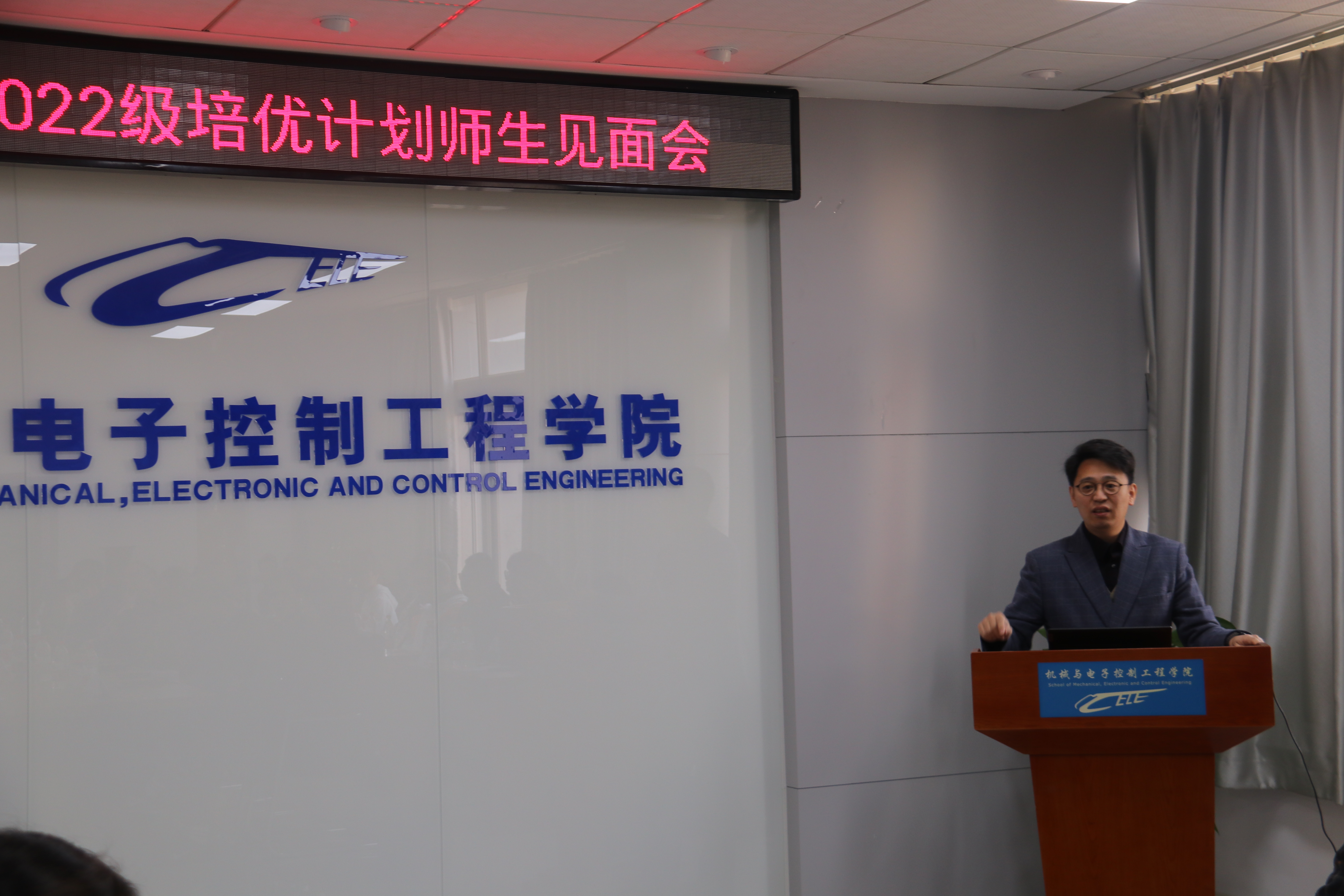 “培优计划”导师张英、陈光荣、孙作宇结合科研导师计划和培优计划的指导经历,充分肯定培优计划对学生科研能力的培养。张英希望同学们能够主动参与、主动探索,主动与导师沟通,导师也希望成为同学们科研道路的领路人;陈光荣认为“导学相长”,期待同学们加入团队共同探索未来;孙作宇认为喜欢和行动是最好的导师,希望学生“爱玩”,即“喜欢”然后“行动”,并欢迎学生一起“玩”转科研。2021级学生代表张海斌和张婧怡分享了上一年度学习成果以及科研实践活动的收获。