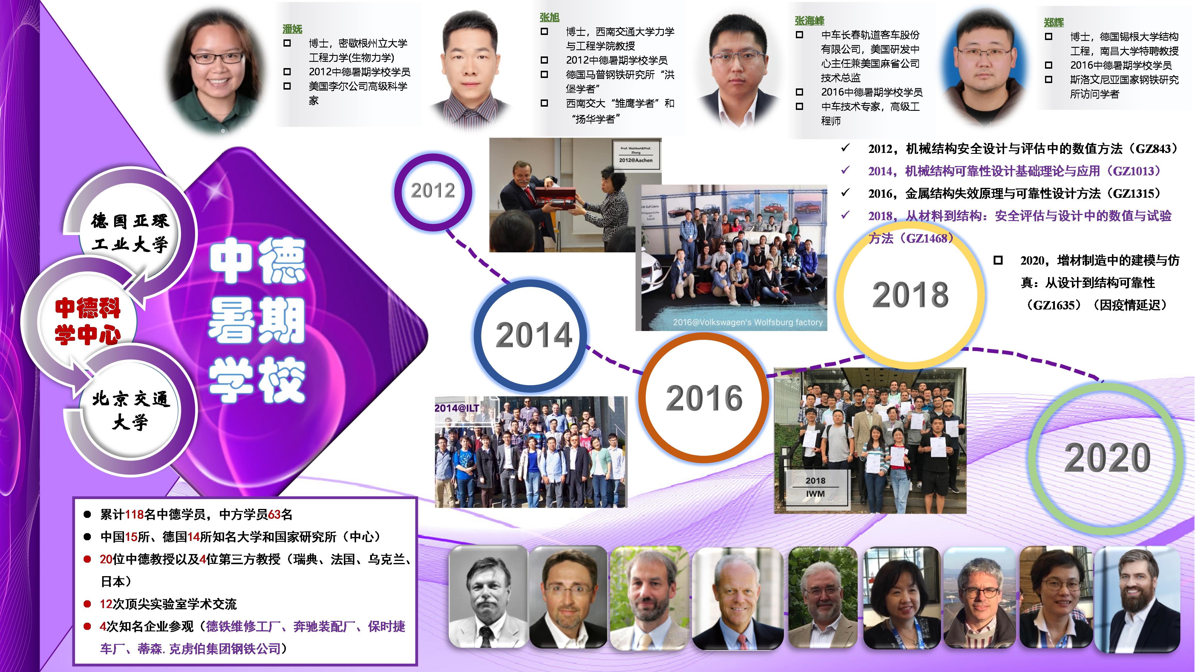 国合基地品牌项目之一:中德暑期学校,由国家自然科学基金委中德科学中心持续(每两年)全额资助,获得合作方、资助方、参与方的高度认可。2012-2018期间,四次中德短期讲习班累计118名中德学员(其中,中方学员63名),分别来自中国15所、德国14所知名大学和国家研究所(中心),倾听20位中德教授以及来自瑞典、法国、乌克兰和日本的4位第三方教授开设的前沿讲座、开展学术成果交流、实验室参观以及德国知名企业实践等活动。六年来,大约三分之一的暑期学校中方学生再次获得出国交换或者深造的机会,所有学生在国际化视野,国际交流等方面显示出活跃的能力,极大地提升了科学研究的质量。