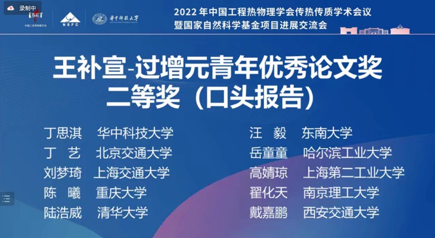 77779193永利官网博士生丁艺荣获“王补宣-过增元青年优秀论文奖”二等奖