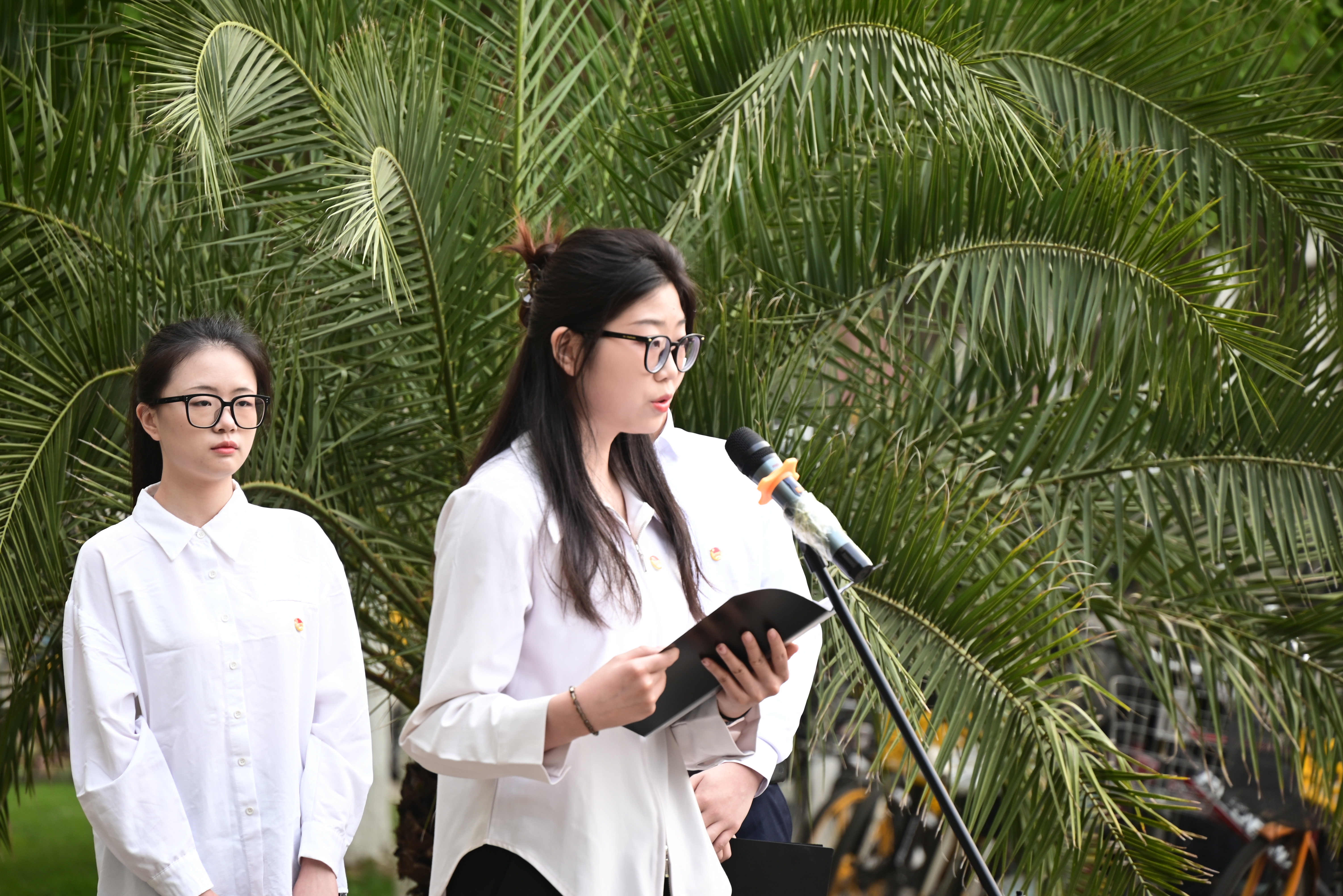 在“国旗下的演讲”环节,第十八届“挑战杯”全国大学生课外学术科技作品竞赛特等奖获得者、2021级博士研究生吴金泽,北京市三好学生、校“自强之星”、2020级本科生谈吉,校十佳团支书、2021级本科生莫小珂分别分享了自己的成长经历,讲述了青春奋斗故事,号召全体同学秉承“知行”校训,发扬“诚朴务实、创新进取”的机电精神,勇攀高峰,用奋斗绘就青春底色。
