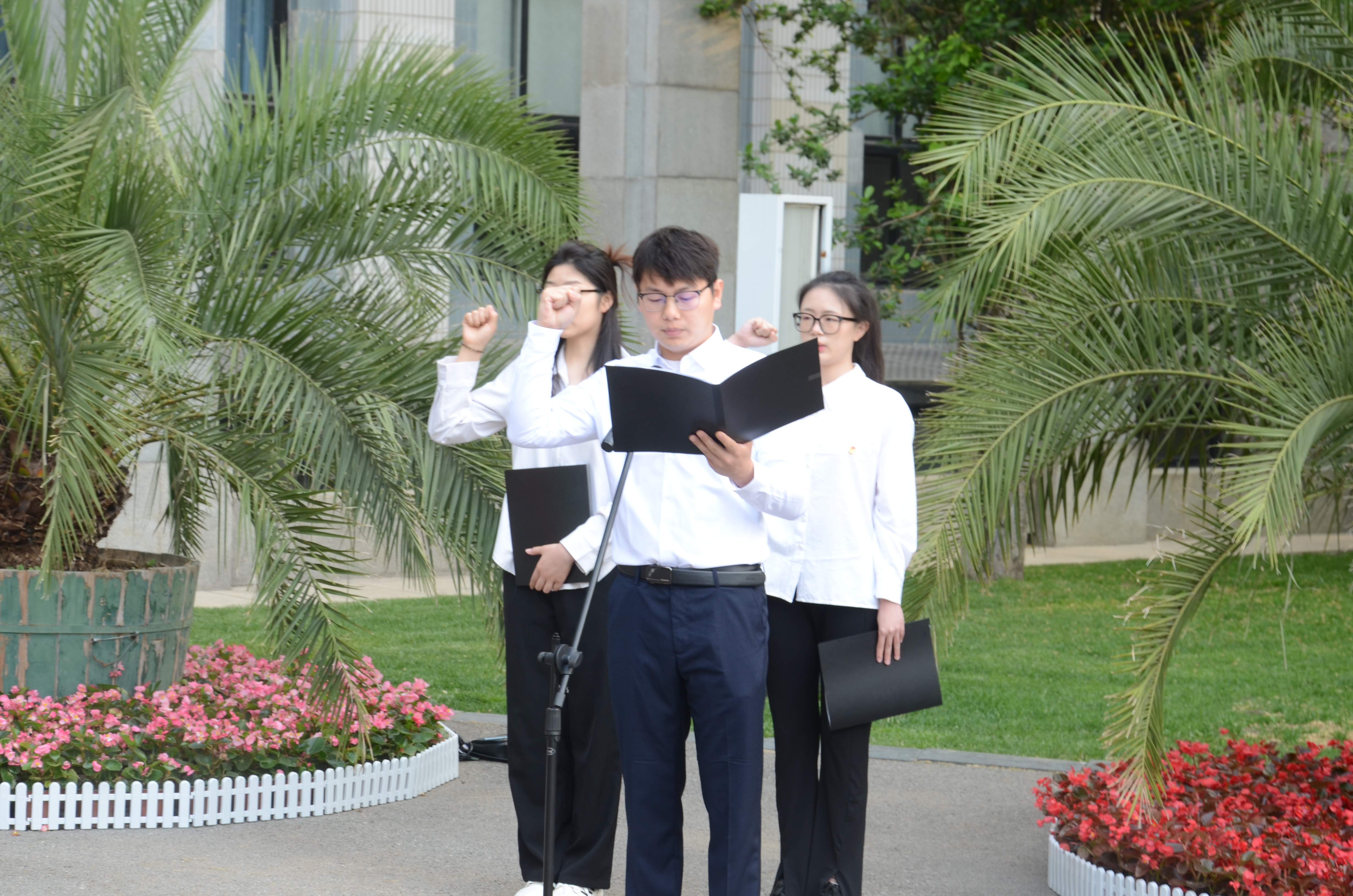 最后,在三位青年代表的领誓下,全体团员青年重温入团誓词。