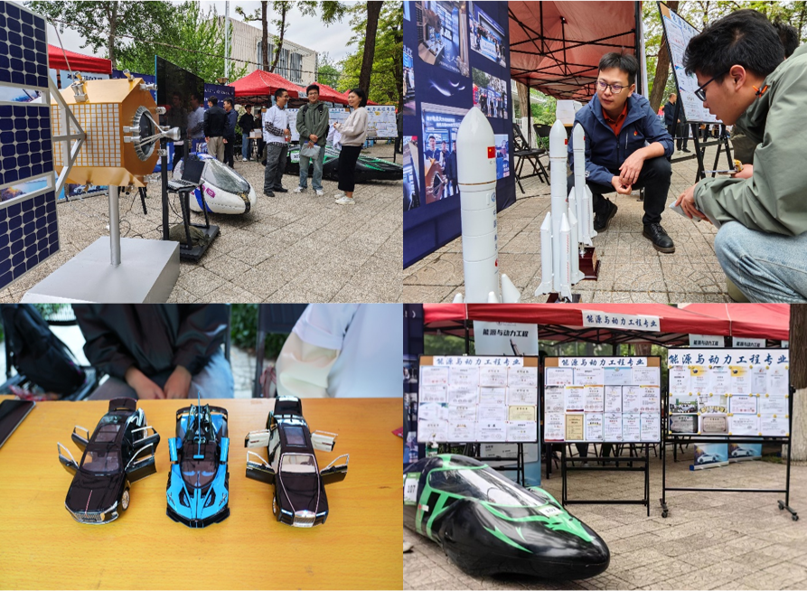 能源与动力工程专业面向“碳达峰、碳中和”、“空天战略”等国家重大战略。在能源与动力工程专业展区,有第十八届“挑战杯”特等奖作品,有2023年两获亚军的节能车,有绿色能源、航天动力和智能汽车的展示,新能源助力科技新发展。