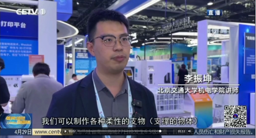 4月29日,中国教育电视台1套也报道了李振坤研发的4D增强打印技术。