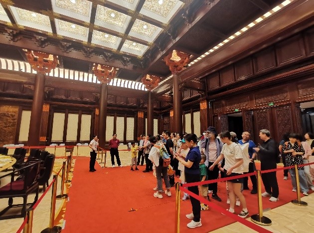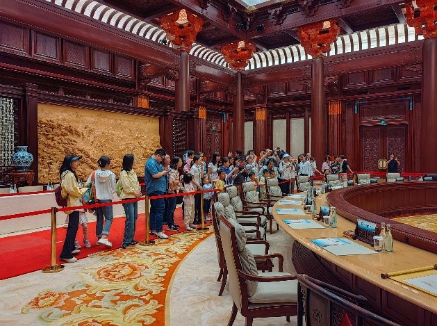 教职工们首先参观了位于雁栖岛的国际会议中心,这里曾举办过2014年亚太经合组织APEC领导人非正式会议,2017年一带一路国际合作高峰论坛和2019年一带一路国际合作高峰论坛圆桌峰会等国际高端政经会议。