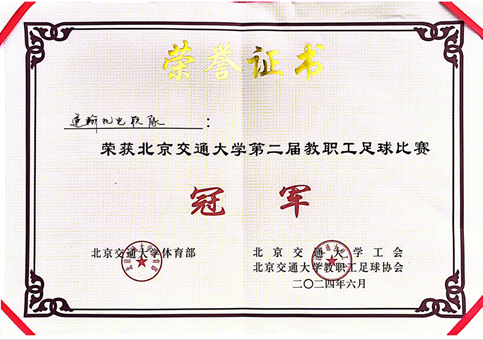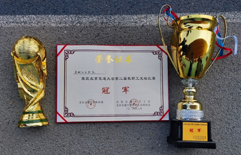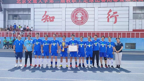 6月11日中午,在六月的艳阳之下,为期两个月的北京交通大学第二届教职工足球赛圆满落下帷幕。机电运输联队队员团结一心奋力拼搏,表现堪称完美。五场战绩分别为4-1电信智能联队、1-0理学联队、3-0土建电气联队、5-1后勤队、1-1校机关队,排名第一,以“四胜一平”的不败战绩强势卫冕!