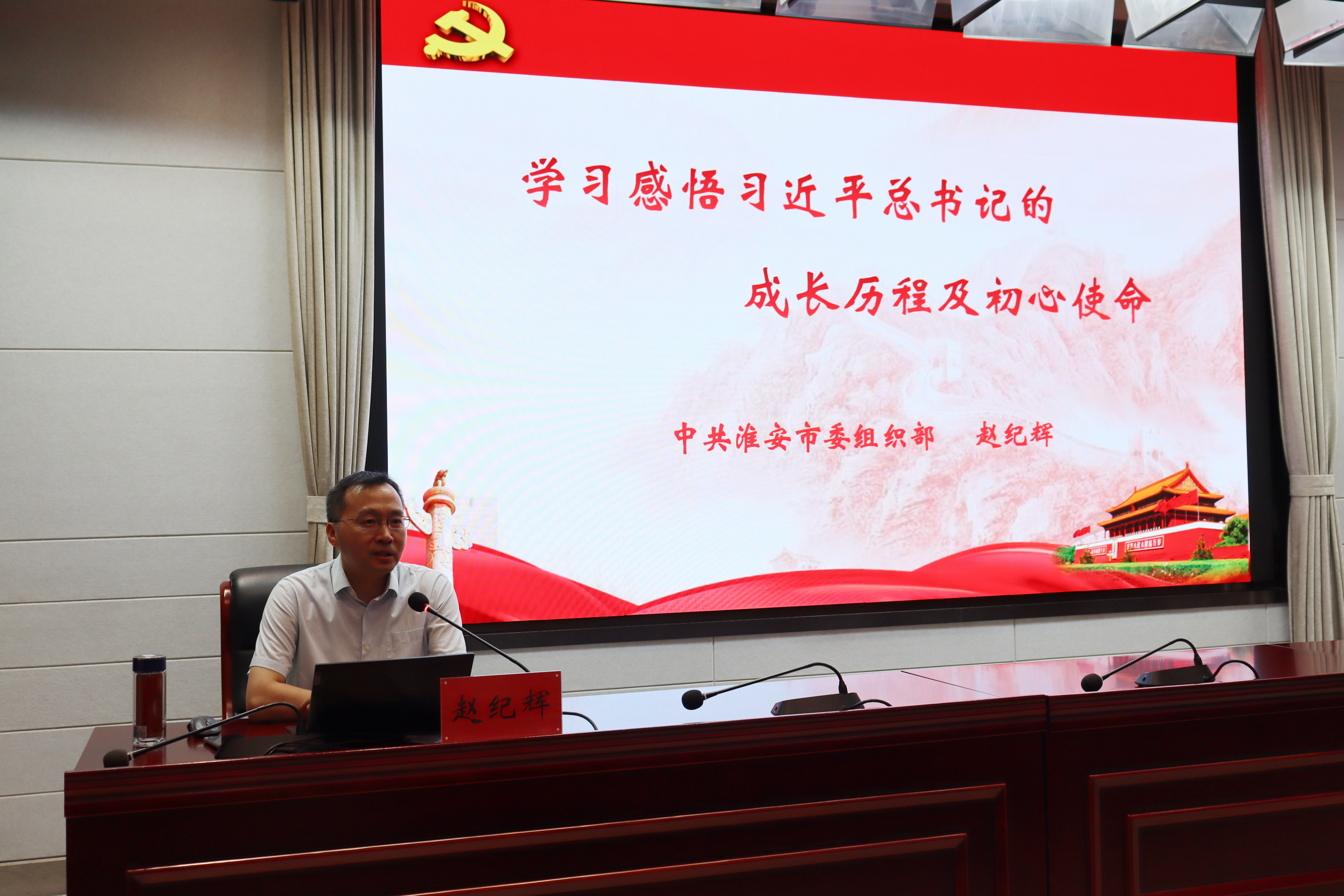 淮安市委组织部干部教育处处长赵纪辉作《学习感悟习近平总书记的成长历程及初心使命》专题讲座,围绕理想信念、群众观点、发展思维、工作作风、党的建设、自我要求六个方面,讲述了总书记的成长历程,带领学员们深入学习领悟了总书记的工作方法及思想内涵。