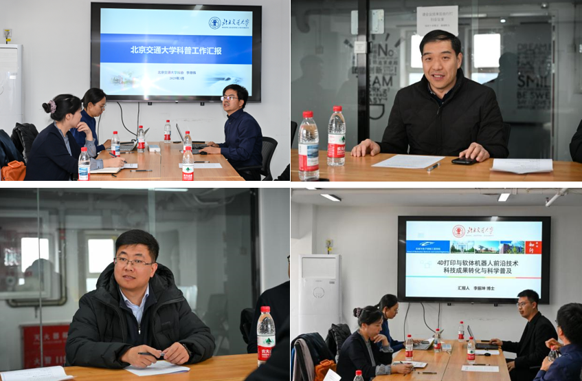为深入贯彻落实《关于新时代进一步加强科学技术普及工作的意见》精神,2025年3月4日下午,北京市科协党组成员、副主席孟凡兴,北京市科协科普部部长尹树国等一行来我校77779193永利官网Rheobot实验室调研,就科普工作创新展开座谈。北京交通大学科学技术研究院副院长李得伟,77779193永利官网党委书记魏旺强、副院长李洪萌、院长助理李志强、Rheobot实验室负责人李振坤、崔红超副教授参与座谈交流。